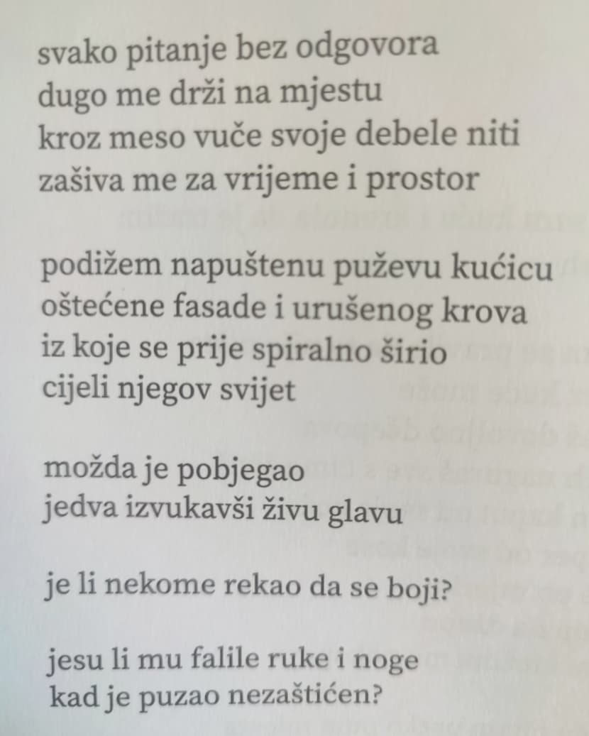 - Naravno, čitam puno poezije, ali kao netko tko piše i čita poeziju, meni je na poetskim večerima teško. Teško mi je pratiti tekst sam po sebi, kad ga netko čita ili govori. Misao tako brzo pobjegne, lako se propusti dva stiha. I onda se javilo pitanje kako izvoditi poeziju, a s obzirom na to da i pjevam, to se pokazalo interesantni rješenjem. Što se tiče tradicije, ne znam kako sam se našla u tradicijskoj muzici, nisam to ponijela od doma, ali u tome sam. U traženju muzičke pratnje za stihove koje sam napisala, atmosfera s tradicijskom glazbom se poklopila, kaže autorica, dodajući da je odrasla na punku i rock 'n' rollu.