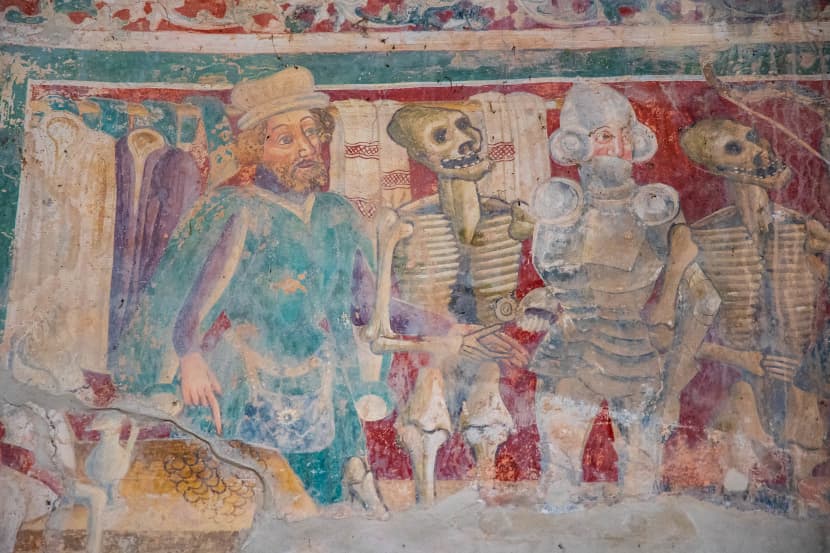 Od crkvenih i svjetovnih vladara preko bogataša, žandara i vojnika, pa sve do sirotinje i djece, svi smo isti u Plesu smrti. Poruka je to sa zapadnog zida Crkve svete Marije na Škriljinah kraj Berma.