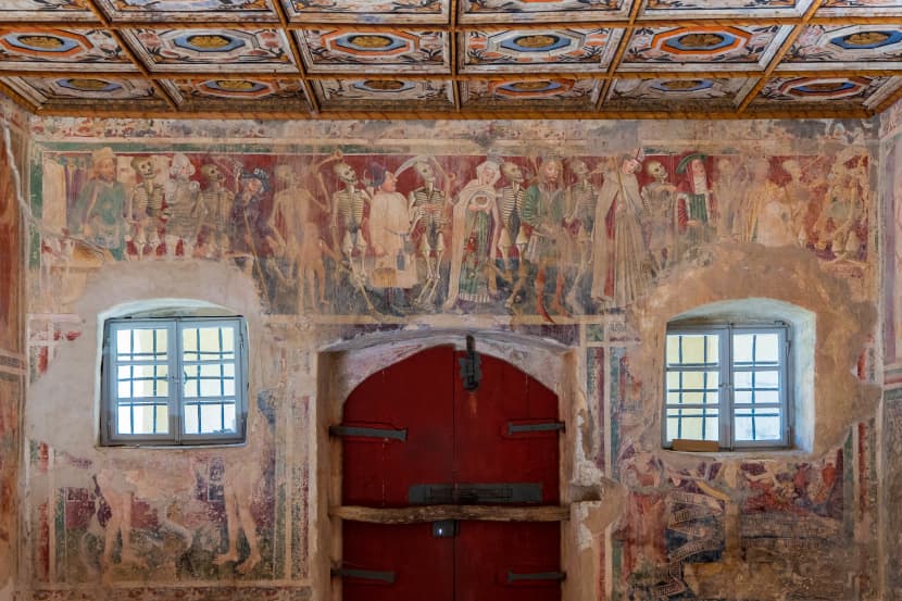 Iznad ulaza u crkvu od 1474. godine nalazi se Danza macabra ili Totentanz, srednjovjekovna freska koja u maniri svojevrsnog stripa ukazuje na neminovnost, ali i univerzalnost, smrti unatoč ovozemaljskih nejednakosti.