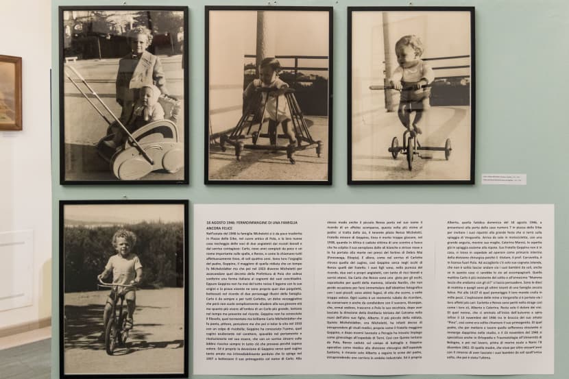 Osim fotografija s pogreba žrtava Vergarole na pulskom groblju Monte Giro, izloženi su obiteljski portreti, ali i brojni dokumenti koji svjedoče o biografskim podacima i profesionalnoj karijeri Geppina Michelettija, poput potvrda o medicinskim specijalizacijama sa sveučilišta u Padovi i Bologni, imenovanja u bolnicama u Puli, Vinesu i kasnije u Narniju, mjestu u Umbriji gdje je, kao ezul, proveo preostali dio života. Tu su i dopisi prefekture i Općine Pula u kojima se hvale njegove ljudske i profesionalne kvalitete te mnogi drugi dokumenti.