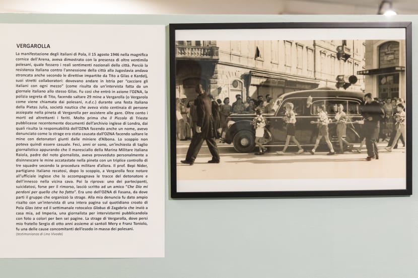 U nedjelju, 18. kolovoza 1946., u uvali Vergarola održavala su se plivačka natjecanja u organizaciji pro-talijanskog nautičkog društva Pietas Julia. Plaža je bila puna kupača, mnogih obitelji i djece. Malo nakon 14 sati dogodila se strašna eksplozija. Eksplodiralo je 28 mina koje su ostavljene u vojnom dijelu uvale i za koje se govorilo da nisu opasne. U detonaciji je poginulo najmanje 65 osoba (gotovo trećina djece ili maloljetnika), a ranjeno je 211 ljudi.