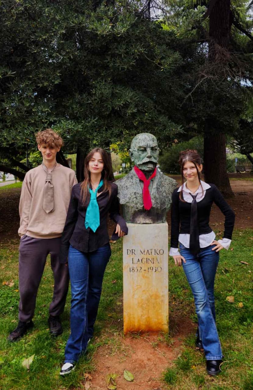 U suradnji s gospodinom Dinom Bedrinom i Academijom Cravaticom, učenici 2.b vezali su kravatu oko biste znamenitog hrvatskog preporoditelja Matka Laginje te na stablu lipe u jesenskom ruhu, u blizini školske zgrade.