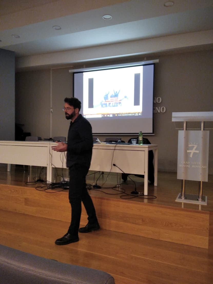 Predavanje „Gorostasni čelični organizmi - Jadranska brodogradilišta i brodovi na dokumentarnom filmu“ održao je sinoć, 24. veljače, u Rovinju dr. sc. Andrea Matošević s pulskog Sveučilišta Jurja Dobrile. Pred publikom pristiglom iz cijele Istre, predavanje je održano u Velikoj dvorani Doma kulture, a u ciklusu javnih predavanja u organizaciji Pučkog otvorenog učilišta Grada Rovinja – Rovigno.