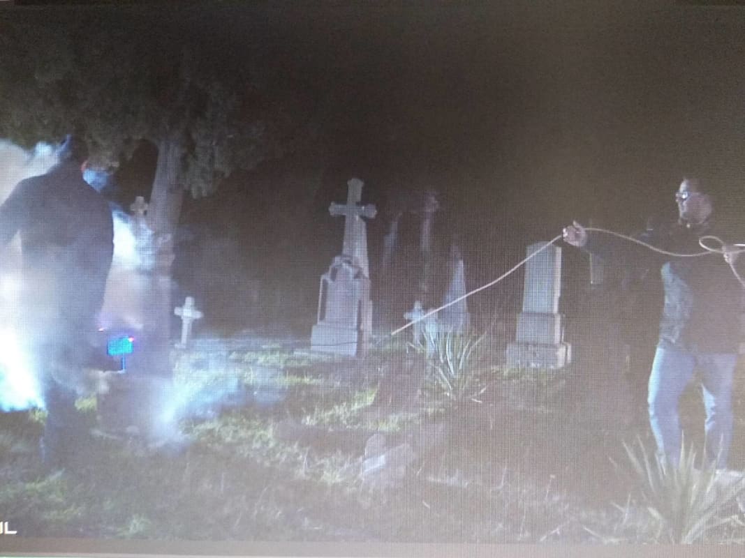 DRAGAN TURINASnimalo se popriličan broj sati, danju i noću, a kako bi dojam jeze na groblju bio što vjerodostojnije prikazan, naš stari rocker Silvano Mikašinović nabavio nam je i dim mašinu te odlično upravljao s njom. Imali smo problema s produžnim kablovima, pa smo ostajali bez struje… ma svega je bilo… (smijeh) Naravno, sav naš trud bi bio uzalud da montažerka Marinela Jeromela nije odradila odličan posao. Također, htio bih se zahvaliti našim pulskim urednicama emisije "More", Korneliji Benazić i Jasminki Kalčić