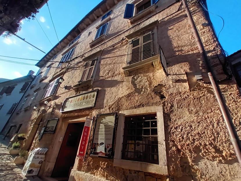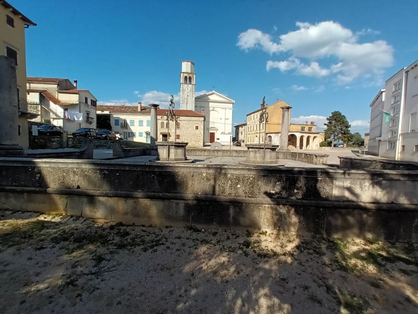 Dakle, kad sam se prvi puta spustio do glavnog trga ostao sam zapanjen ljepotom, rekao sam sebi: "Vidi ti vraga, skoro da sam to propustio zbog fete pršuta i žurbe na putu". Dok je Gianni snimao trg, ja sam se uvukao u konobu Marina Baldinija, dugogodišnjeg načelnika općine Vižinada i uvaženog intelektualca (bio je i prvi istarski zastupnik u EU parlamentu).