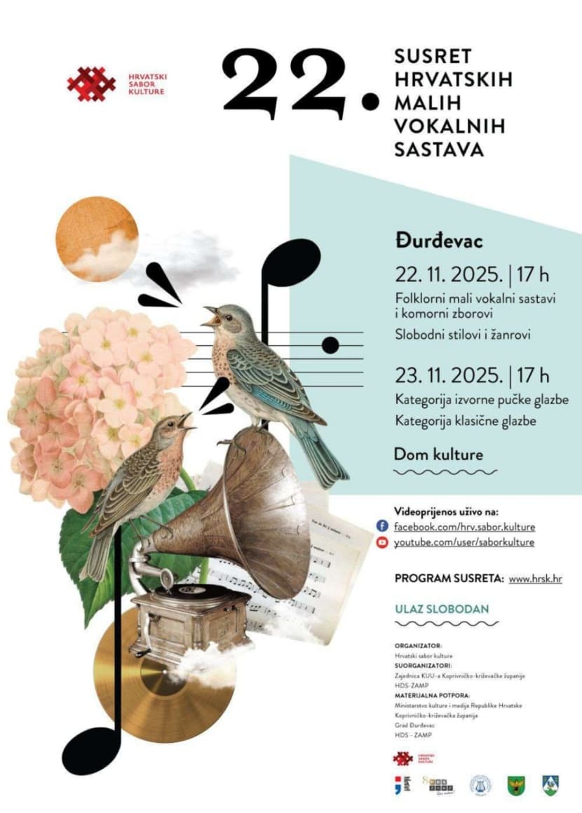 U bajkovitom okružju snježnog Đurđevca proteklog se vikenda održao 22. Susret hrvatskih malih vokalnih sastava u organizaciji Hrvatskog sabora kulture uz potporu Ministarstva kulture.