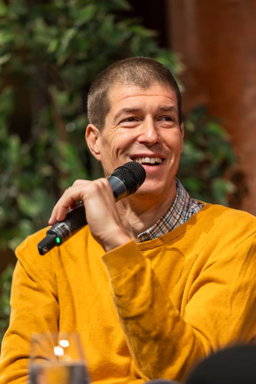 Pisac, publicist, istraživač, aktivist, koji se danas zalaže za globalna prava, kao i poboljšanje zatvorskih uvjeta i ljudska prava uopće, a u mladosti je bio član ultra lijeve organizacije Prima Linea te je zbog svojih aktivnosti 20 godina proveo u zatvoru. Susret je u programu Nemiri vodio Andrea Matošević, a prevoditeljica je bila Marian Barbić Poropat.