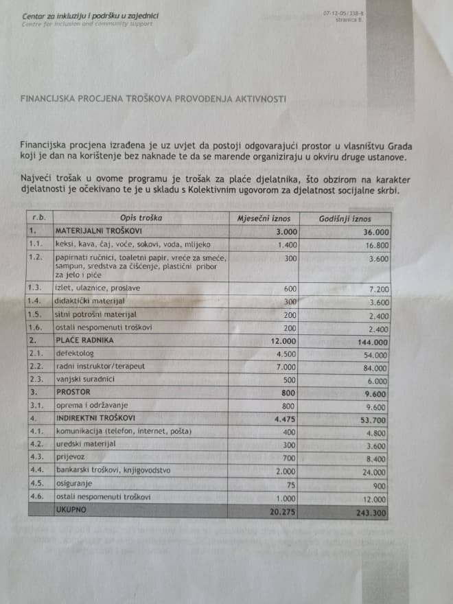 Markom Perkovom početkom prosinca 2007. godine, a nastavno na razgovor odrađen dva dana ranije, šalje financijsku procjenu troškova provođenja ove usluge. Mjesečni trošak bi, procijenjeno je tada, iznosio 20.275 kuna, a godišnji 243.300 kuna. Petnaest godina kasnije – odgovora nema.