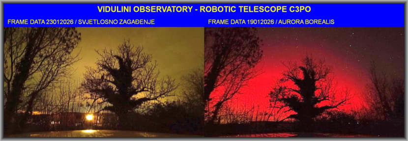 - Netom prije uključivanja famozne rasvjete sa zvjezdarnice smo napravili iznimne fotografije Aurore borealis, rijetke pojave sa sjevera, koja nas je počastila svojim prisustvom na istarskom nebu, no sada se više ne vide niti obične zvijezde.