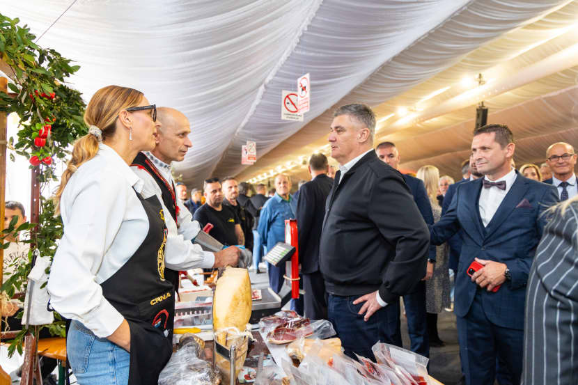 Među njima je bio i predsjednik Republike Hrvatske Zoran Milanović, koji je u pratnji načelnika općine Tinjan Gorana Hrvatina obišao štandove i razgovarao s izlagačima, odnosno proizvođačima pršuta.