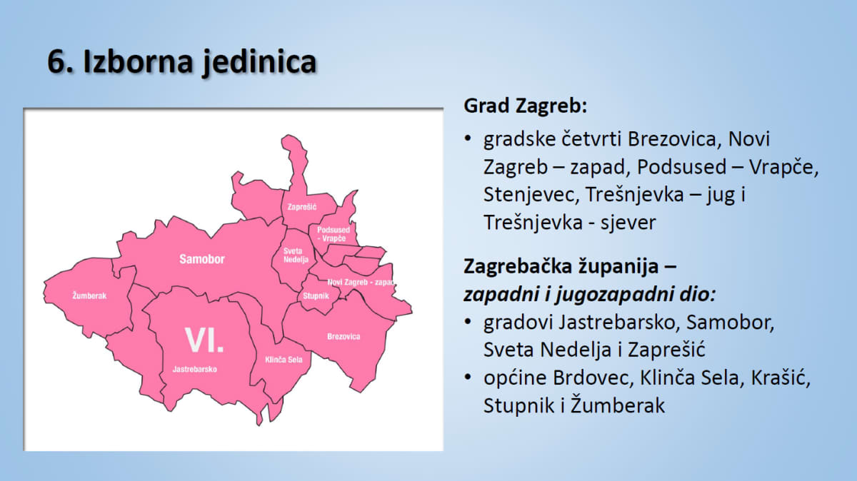 "Zagreb je umjesto na četiri jedinice podijeljen na tri, sada je u 1., 2. i 6. izbornoj jedinici. Otklanja se prigovor da stanovnici na Jarunu ili Brezovici glasuju s biračima koji su na obali Jadranskog mora, te specifičnosti više nema", rekao je premijer.