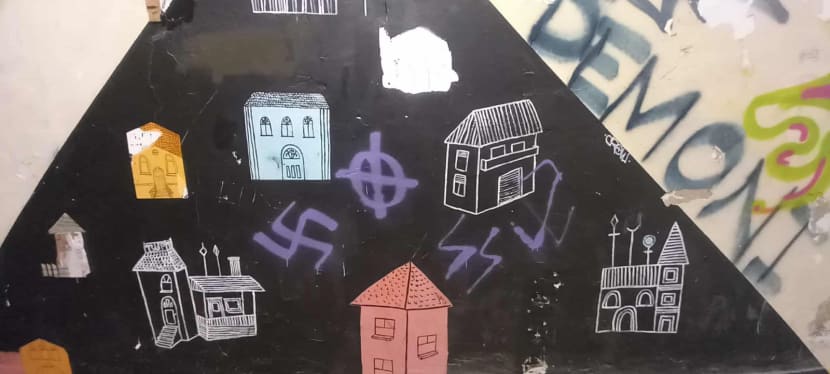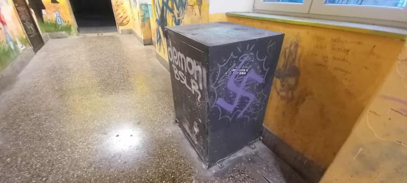 Na drugom katu Društvenog centra Rojc, prije par dana, točnije baš u periodu održanog marša protiv fašizma, kako navodi naša čitateljica osvanuo je ustaški grafit.