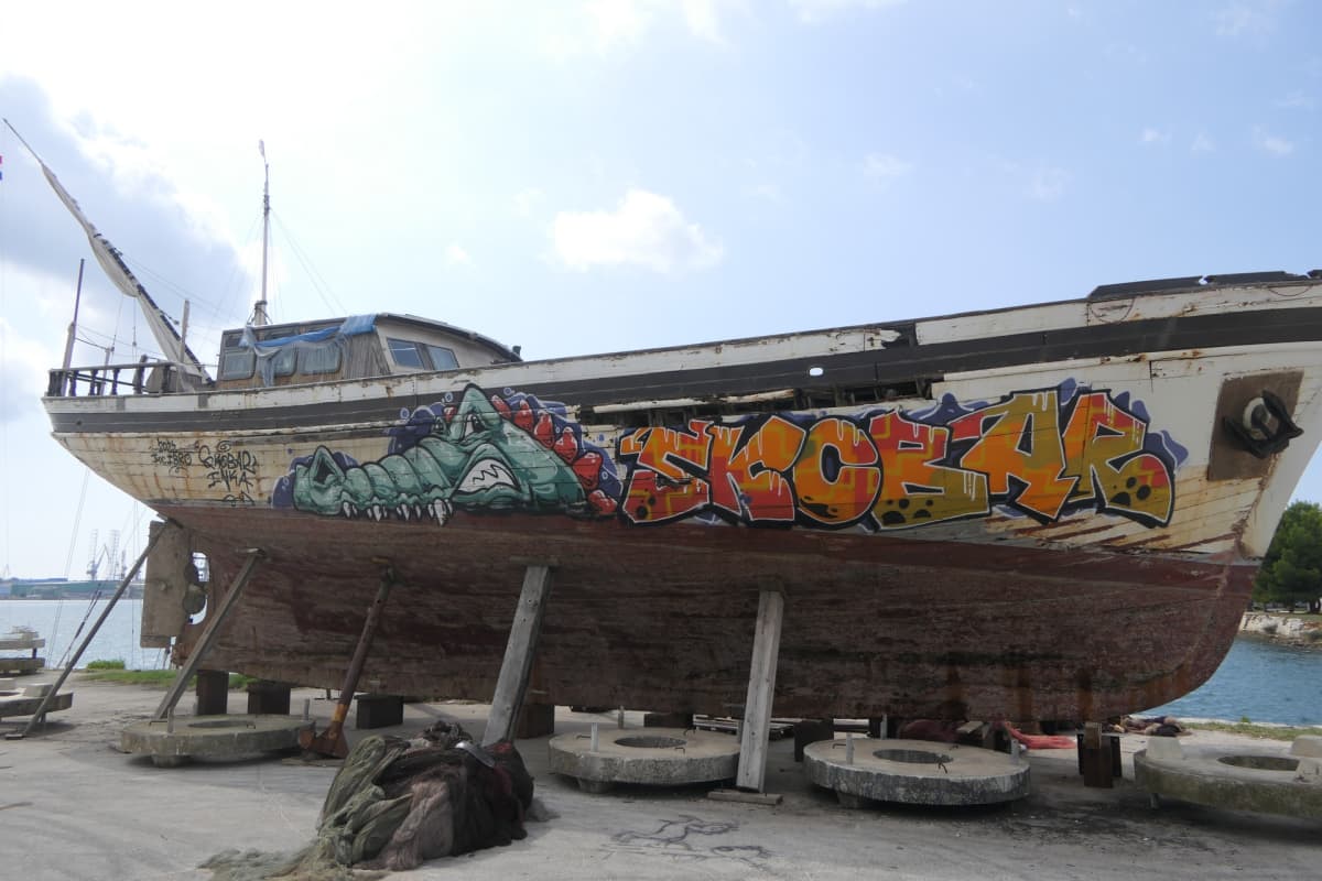 Lako je za uvidjeti da niti jedan objekt, pa tako niti brodovi koji se nalaze na kopnu nisu prošli bez "dodira" sprejeva street art ekipa. Sve što se moglo oslikati, je oslikano.