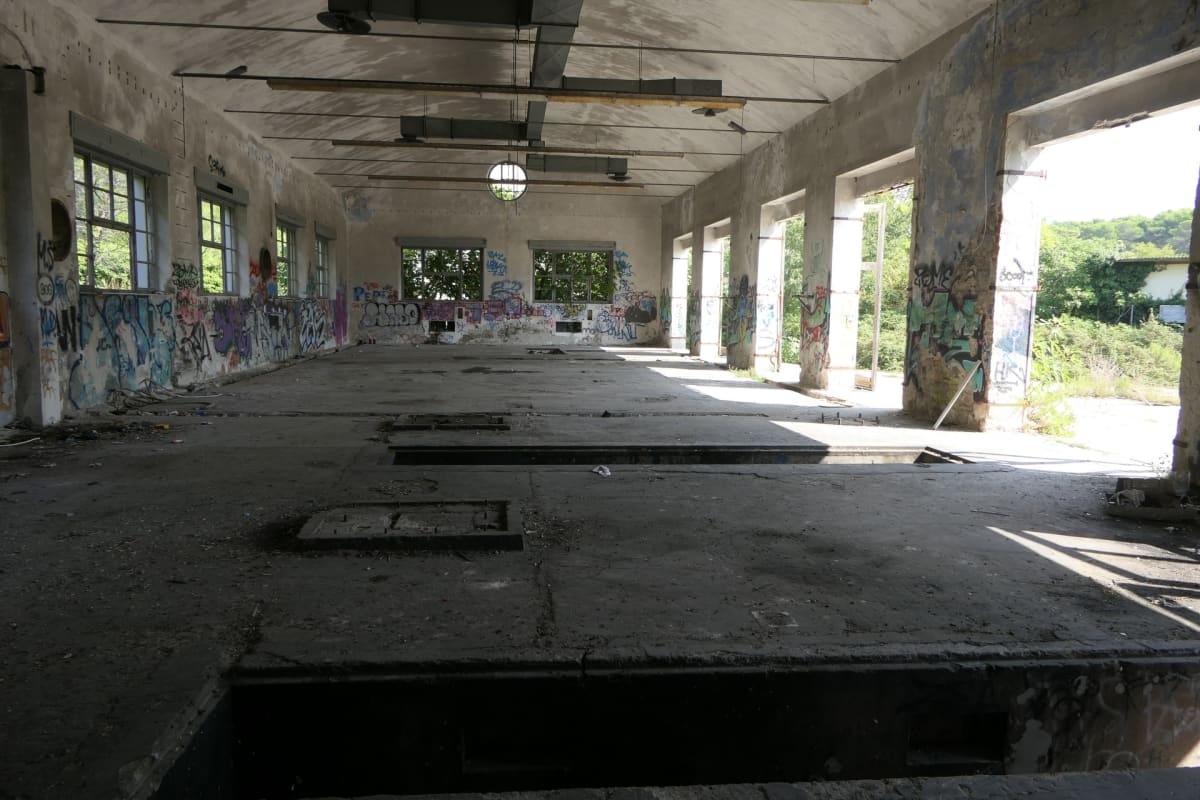 Niti 50 metara od ulaza u kompleks je vjerojatno najpoznatija "free" automehaničarska radionica u Puli, s nekoliko kanala koji su u prošlosti služili za popravak vojnih vozila.