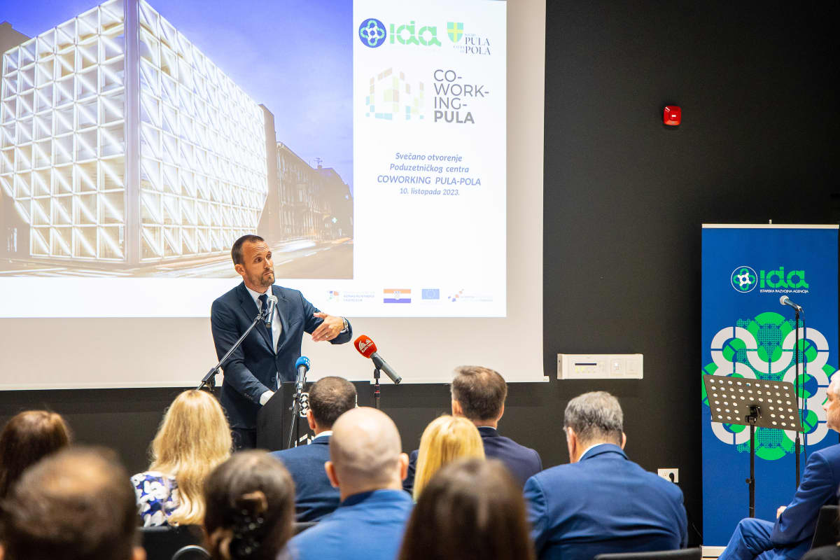 Prozvan novim urbanim centrom grada Pule, večeras je na prigodnoj svečanosti otvoren Poduzetnički centar Coworking Pula u Marulićevoj ulici, u što je ukupno uloženo 3,6 milijuna eura. Uoči samog početka svečanog dijela, uzvanici, njih više od stotinu, svjedočili su paljenju posebnih svjetala kojima je cijela zgrada osvijetljena te je uslijedio i obilazak zgrade.