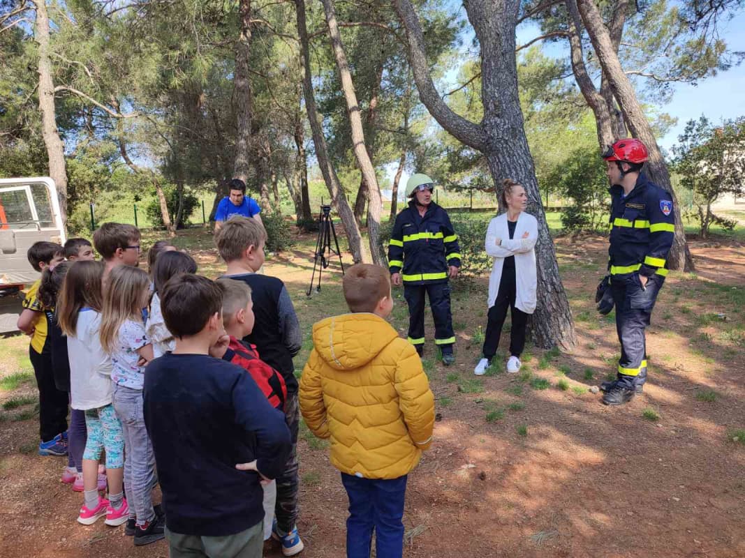 U cilju prezentacije svojih aktivnosti, vatrogasci iz DVD-a Medulin, obučeni u vatrogasna odjela, opremljeni s dva vozila pokazali su djeci kako se gasi požar, koje su to aktivnosti koje vatrogasci obavljaju, a djeca su imala priliku isprobati dio opreme uz asistenciju članova DVD-a, ali i razgovarati s vatrogascima i pitati ih sve što ih zanima. Djeca su bila oduševljena opremom naših dobrovoljnih vatrogasaca, a posebno su im bila interesantna i vozila.