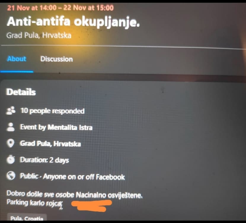S jasnim i nimalo mirotvornim porukama (već od samog plakata s maskiranim licem, prvim bijelim poljem u grbu, do poruka da su na parkingu Rojca dobrodošle "sve nacionalne osviještene osobe"), protuokupljanje se najavljuje s Facebook stranice korisnika 'Mentalita Istra', koji je povezan s dijelom navijača Demona.