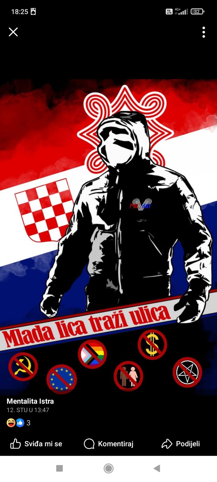 Zloduh je nakon Thomsponova zagrebačkog koncerta i legitimiranja ustaškog pozdrava 'Za dom spremni' pušten iz boce. Istodobno s početkom tradicionalnog pulskog Antifa festivala, koji počinje sutra u Rojcu, najavljeno je protuokupljanje pod nazivom 'Anti-antifa okupljanje', čiji plakat sadrži lik maskiranog borca i prvo bijelo polje na hrvatskom grbu...