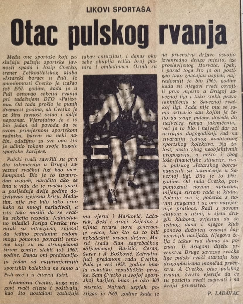 "Jedan od najskromnijih kolektiva Pule, Teško Atletski klub Istarski borac, u kojem rade pravi entuzijasti, skromno i naporno, sprema se za ulazak u prvu Saveznu rvačku ligu. Svi vrlo ozbiljno shvaćaju svoje zadatke, to je uostalom i garancija uspjeha" donosi jedan od novinskih natpisa iz tog doba.