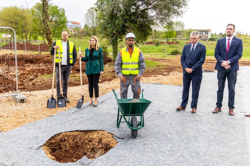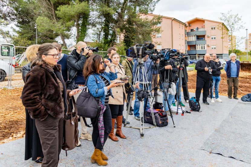 Nekoliko metara od govornice, za koju će jedan po jedan uskoro stati, u špaliru stoje ministar Branko Bačić, pulski gradonačelnik Peđa Grbin i njegov zamjenik Siniša Gordić, istarski župan Boris Miletić i direktor Agencije za pravni promet i posredovanje nekretninama Dragan Hristov, a tu su i predstavnici građevinara i dogradonačelnik iz redova talijanske manjine Vito Pauletić.