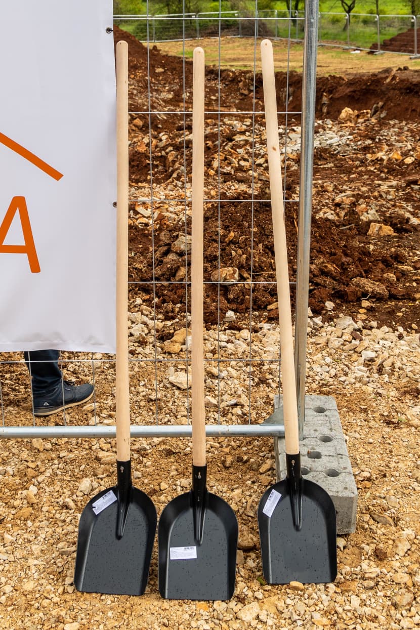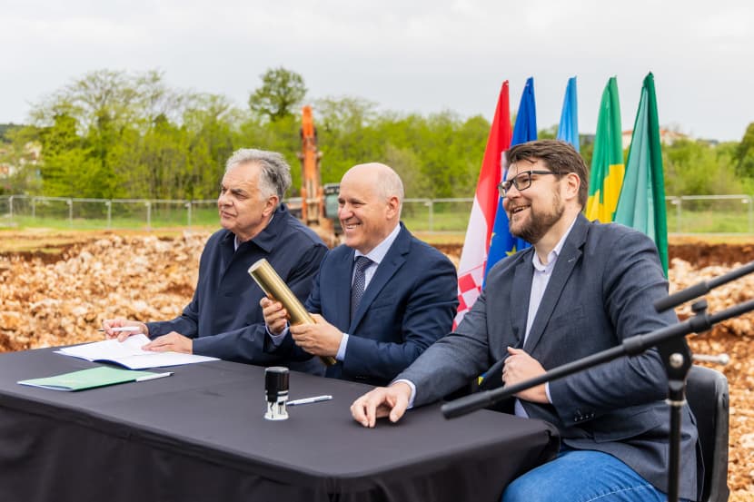 Bageri su se razmahali po parceli, tu je i zlatna kapsula kojoj je namijenjena uloga modernog kamena temeljca, stigli su novinari, a stigla je i svita političara. Svečanost može početi!