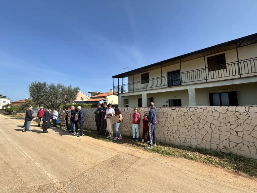 Stanovnici Lovrečice kraj Umaga prosvjeduju protiv deložacije obitelji Liščević. Od deset sati na terenu je veći broj policajaca koji asistiraju pokušaju iseljavanja obitelji u kojoj je i jedna teško bolesna ženska osoba.