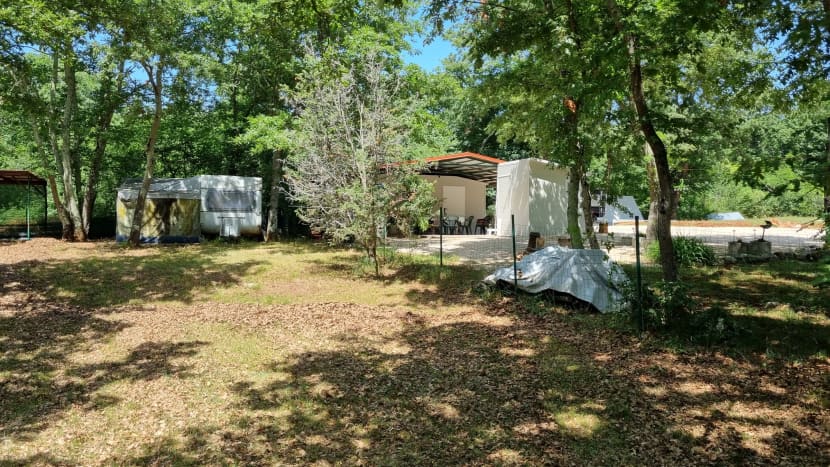 Na jednom dijelu imanja starija kamp kućica, a nedaleko nje izliveni betonski temelj od 50 kvadrata na kojem je izgrađen objekt od PVC panela. Predstavljamo se kao novinari koji s njima žele porazgovarati o ilegalnom boravku i strahovima od dolaska inspekcije. Pedesetogodišnjaci iz Slovenije pristaju na anoniman razgovor.