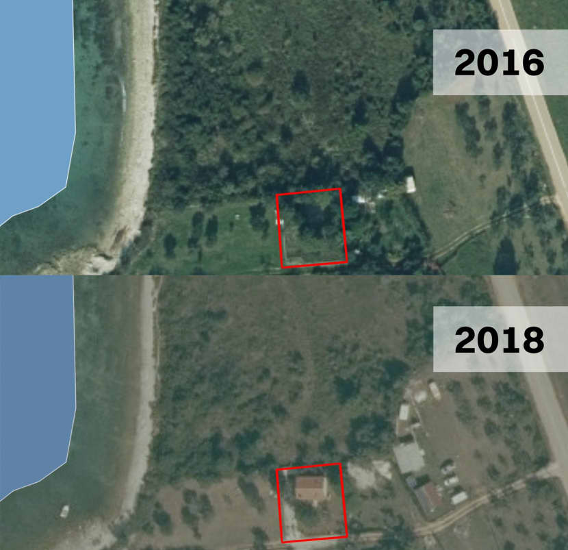Malo bliže moru, na lokaciji Dragonera, na samo 50 metara od obale, nalazi se objekt u vlasništvu Ružice Mišan koja je prekjučer također saslušana na riječkom USKOK-u. Na toj je parceli legaliziran objekt za kojeg je posve očito da nije postojao 2016. godine, a kamoli 2011.