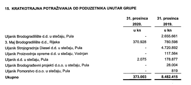 Zanimljivo je kako se u izvješću spominje i potraživanje prema 3. Maju u iznosu od 500 tisuća kuna, a nigdje nema ni spomena potraživanju prema Gradu Puli u iznosu od 12 milijuna kuna.