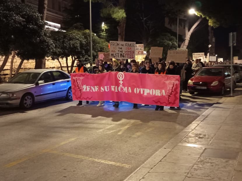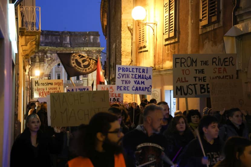 “From the river to the sea, all the women must be free” („Od rijeke do mora sve žene moraju biti slobodne“), „Koliko ubijenih žena je previše?“ i „Proleteri svih zemalja, tko vam pere čarape?“ samo su neke od poruka s Noćnog marša žena koji se večeras, s početkom u 18.30, održao u Puli povodom Međunarodnog dana žena. Mimoza nije bilo.