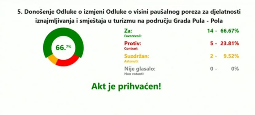 Sa stotinu na stotinu i pedeset! Toliko je povećanje paušalnog poreza za iznajmljivače Gradsko vijeće Grada Pule izglasalo danas na redovnoj sjednici.