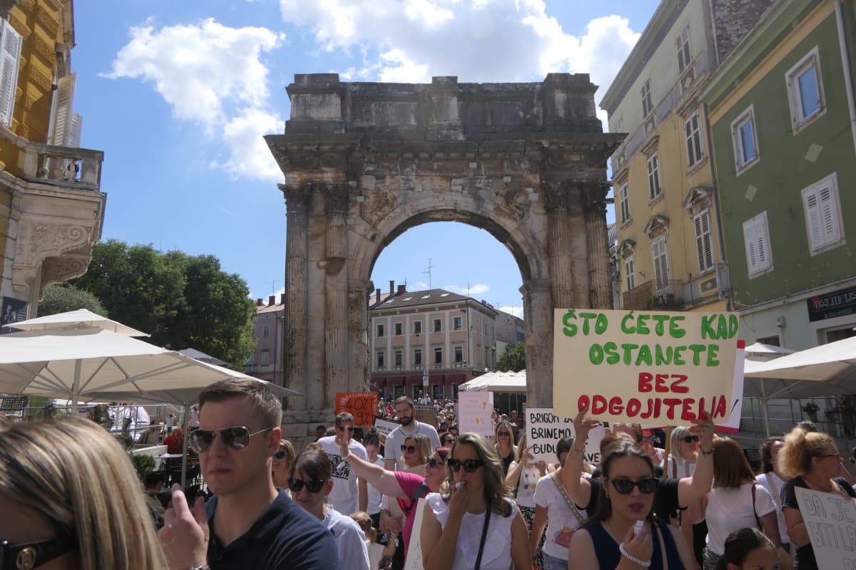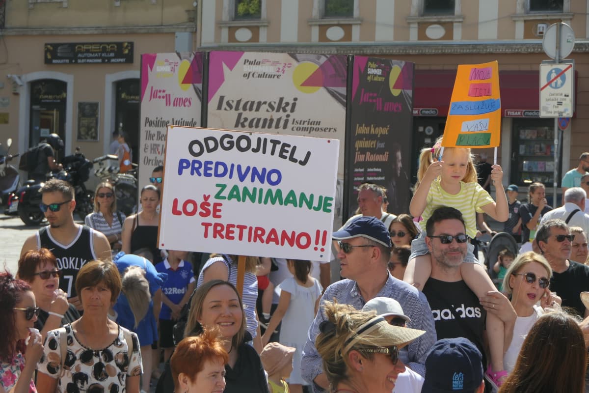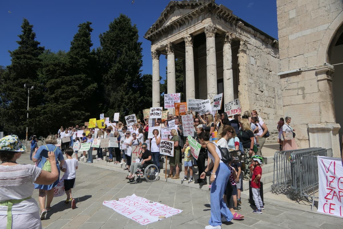 Na protestu se okupilo nekoliko stotina građana, a podršku djelatnicama i djelatnicima vrtića došli su dati mnogobrojni Puležani. Očekivano, najviše je bilo roditelja djece koja idu vrtiće.
