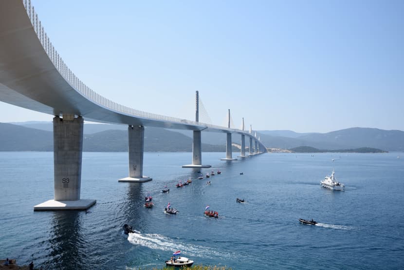 Pelješki most, jedan od najvećih projekata u EU-u i najveći u Hrvatskoj koji je financiran sredstvima Unije, svečano je otvoren u utorak navečer, a redovan promet preko mosta koji povezuje jug Hrvatske s ostatkom države krenuo je u ponoć.