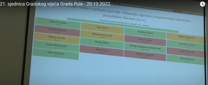 Suzdržalo se troje IDS-ovih vijećnika Monica Derocchi, Valter Boljunčić, Marin Lerotić i spomenuti SDP-ovac Igor Belas.