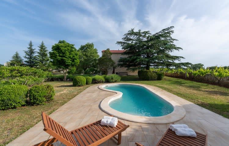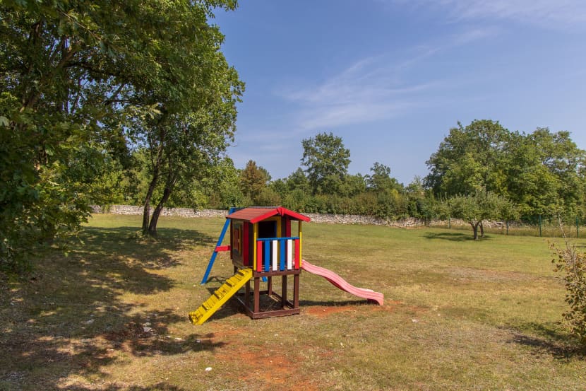 Kuća, od stotinjak kvadrata, smještena je na gotovo sedam tisuća kvadrata okućnice. Okružuju je šumica sa dječjom kućicom, livada, voćnjak, mali vinograd... Na terenu je simpatičan bazen u obliku srca, igralište za badminton, a gostima su na raspolaganju i drugi sportsko-rekreativni sadržaji. Sve miriše po lavandi i majčinoj dušici koja dominira travnjakom.