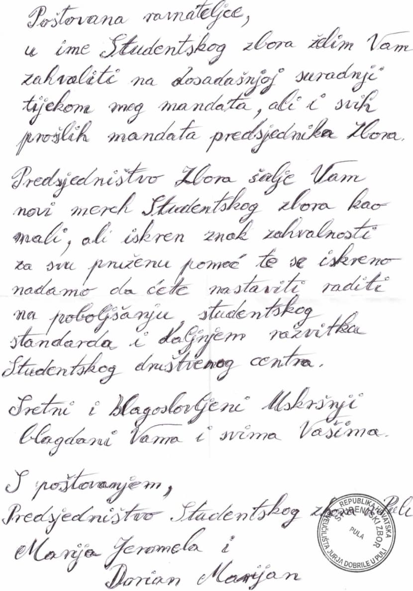 "Predsjednica Studentskog zbora se dan ranije zahvalila ravnateljici!"