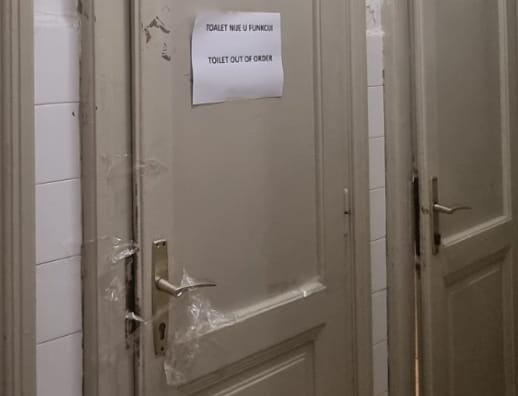 Tako od četiri toaleta, u funkciji je samo jedan, a o tome su posjetitelje ovih dana izvijestili na način da su na vrata isprintali poruke: "toalet nije u funkciji".