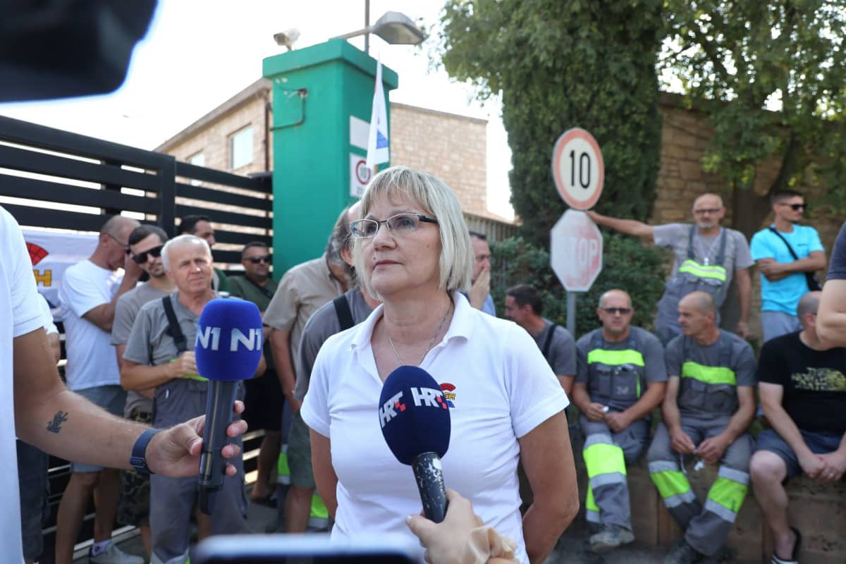 Oko 10 sati ispred radnika cementare iz Zagreba je došla i predsjednica Sindikata graditeljstva Hrvatske Jasenka Vukšići.