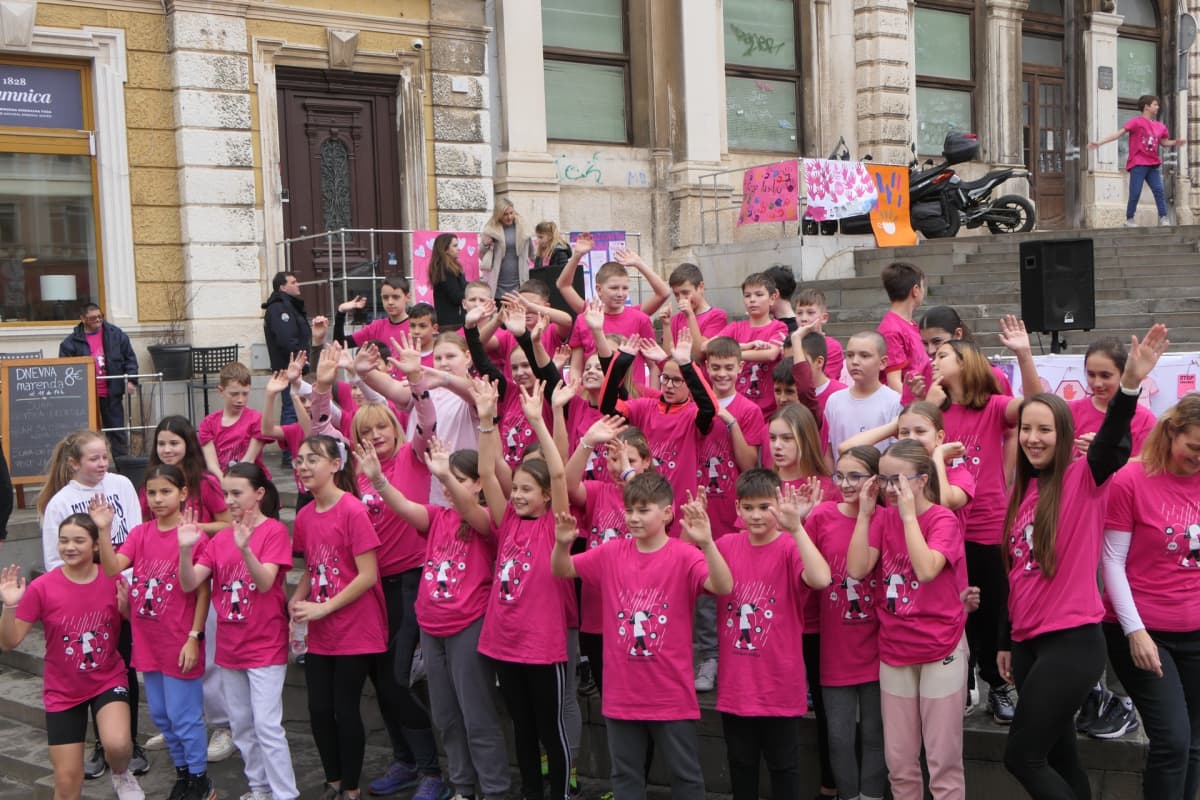Sudionici utrke nosili su ružičaste majice s prigodnim logom u znak podrške borbi protiv vršnjačkog nasilja.
