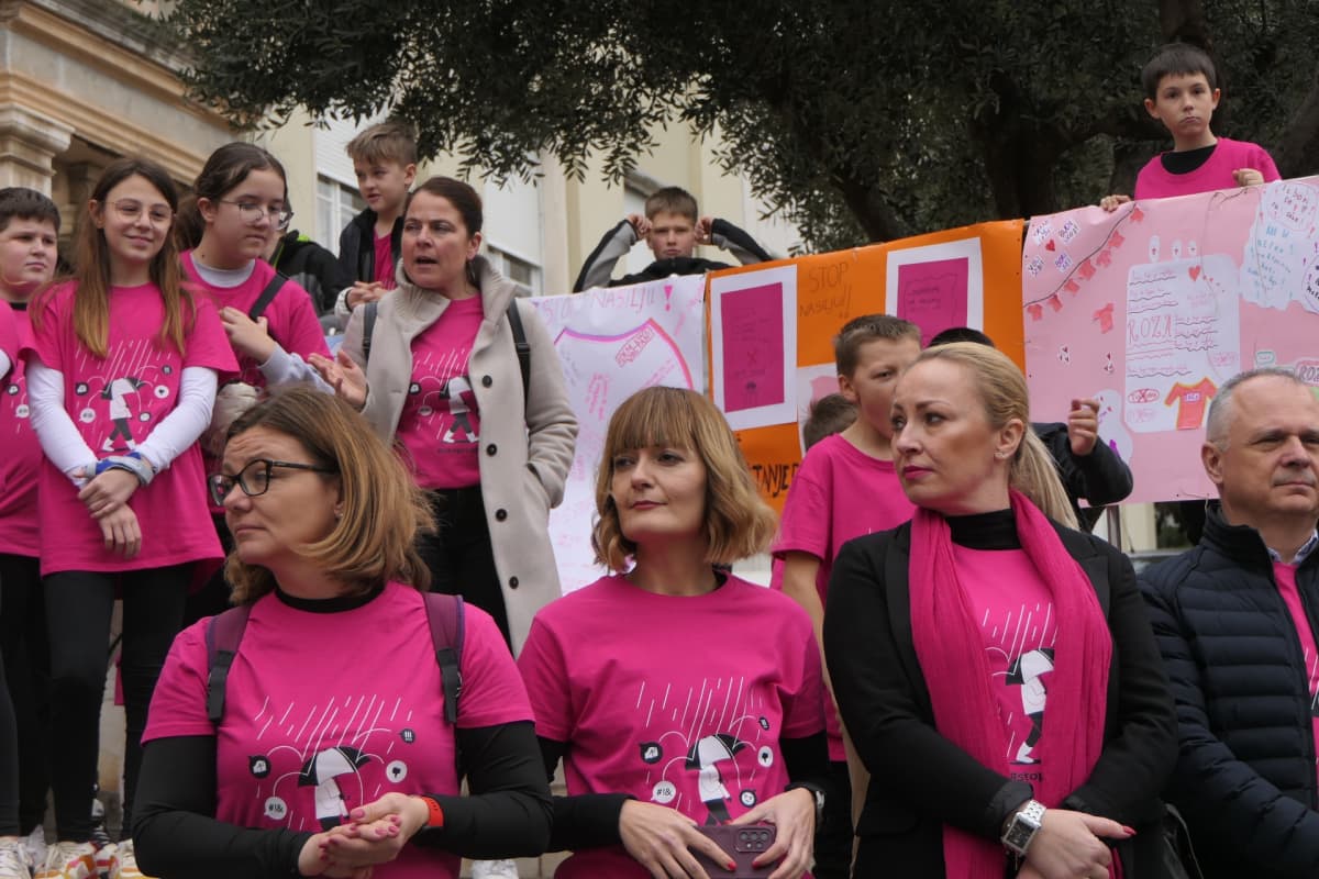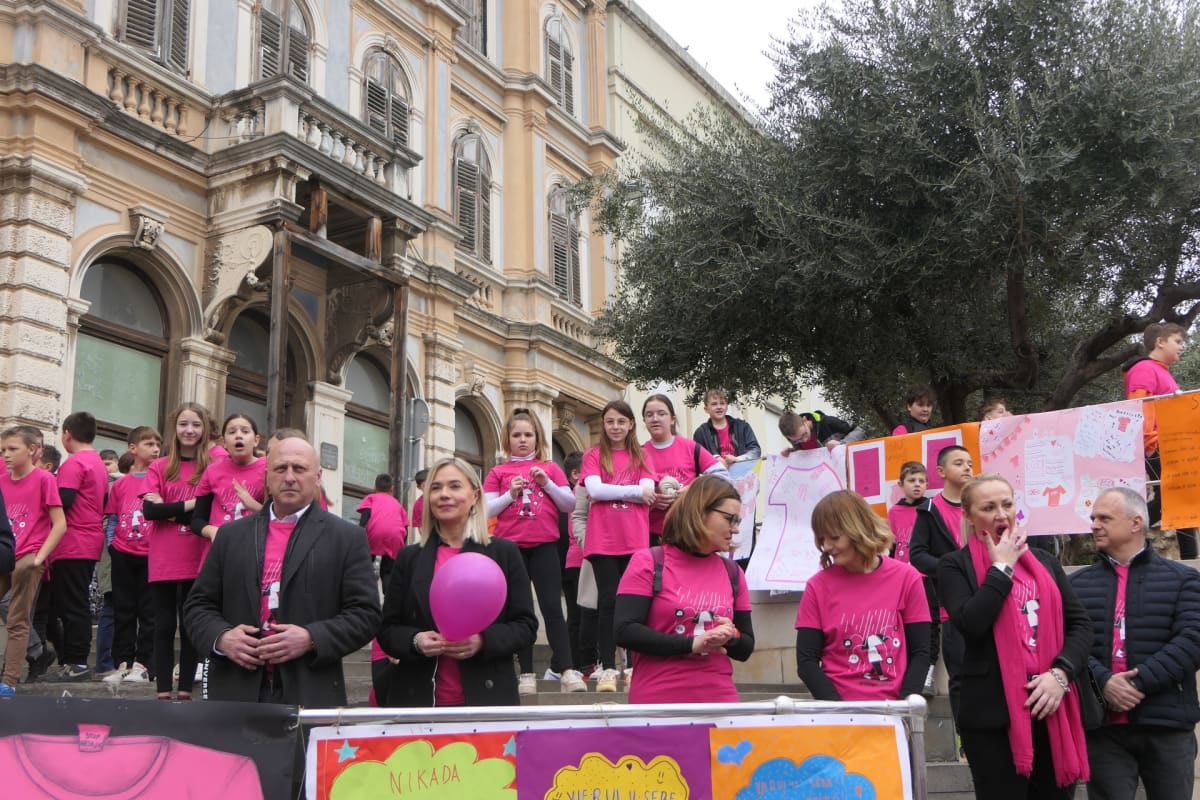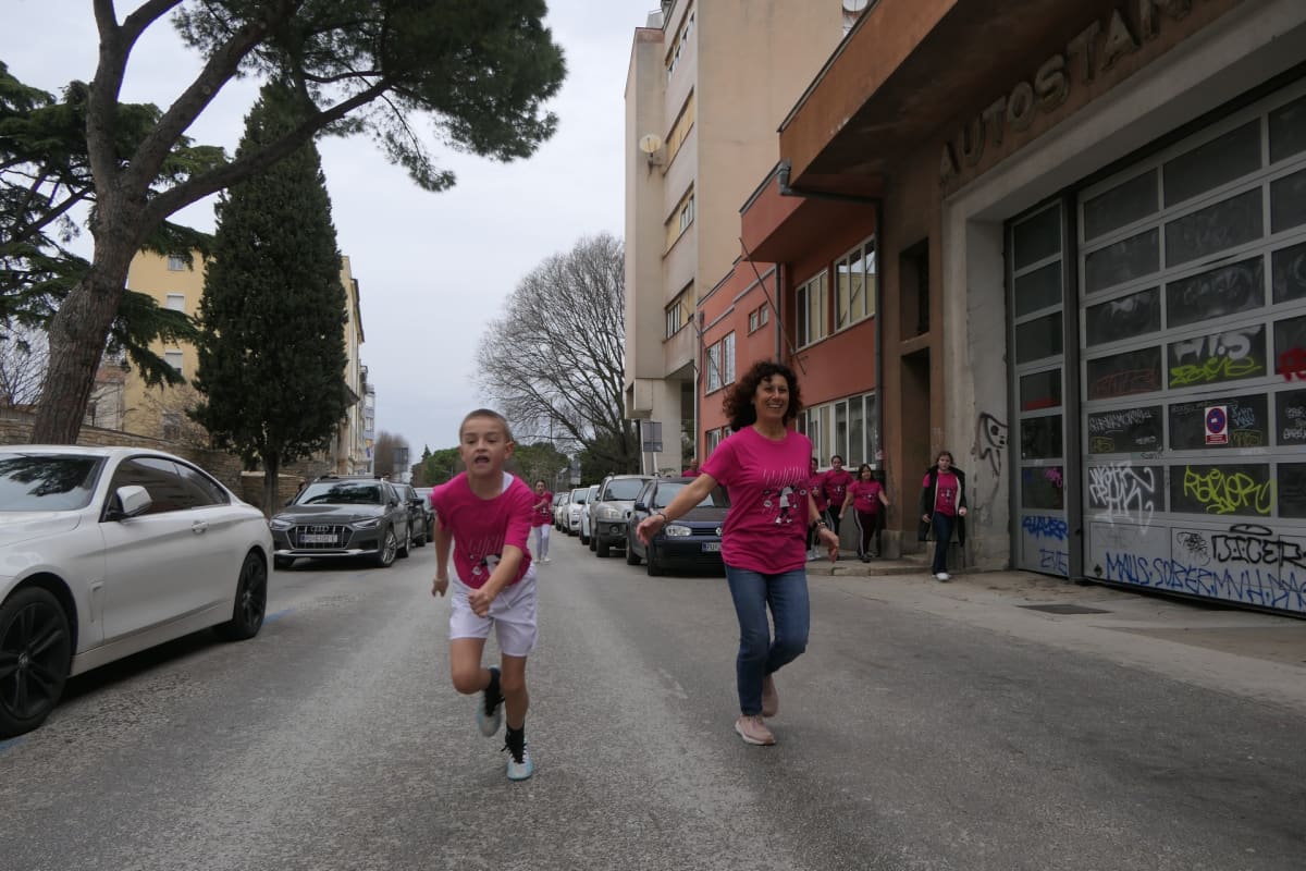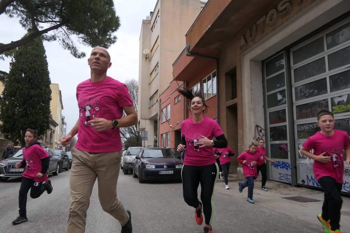 - Danas s ovom revijalnom utrkom obilježavamo Dan ružičastih majica, cilj je trčanjem kroz grad upozoriti na vršnjačko nasilje s nakanom prevencije. Djeca su jako sretna i uzbuđena zbog sudjelovanja u utrci. Kako bi osvijestili problem, radili smo razne plakate na temu vršnjačkog nasilja u školi. O nasilju je potrebno pričati kako bi osvijestili problem, među djecom, učiteljima i cijelim društvom. Problem je dosta zamagljen i zato se o njemu treba što više govoriti u javnosti, kako bi se borili protiv tog vida nasilja među djecom, poručila je Valentina Vuković profesorica tjelesnog odgoja iz pulske Osnovne škole Vidikovac.