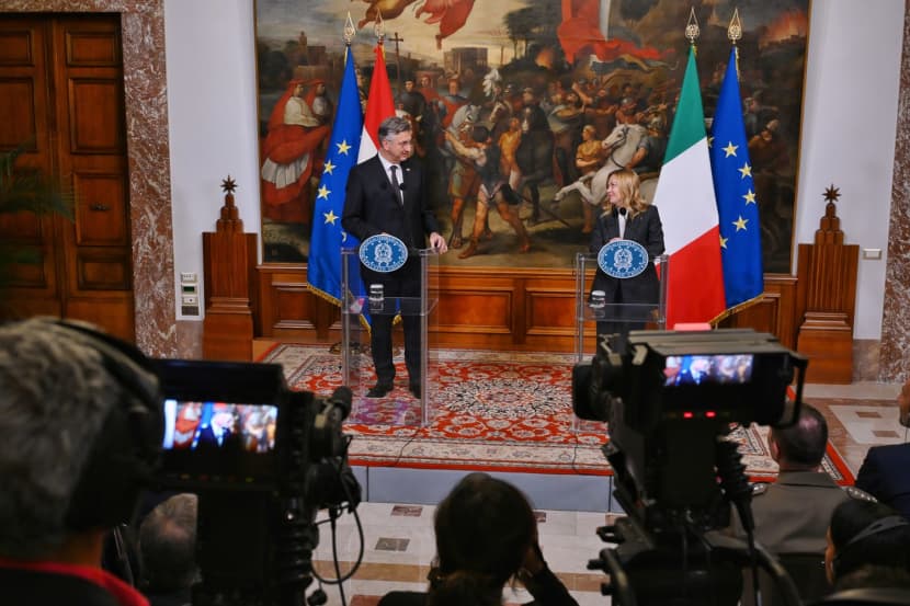 U fokusu službenog posjeta gospodarska suradnja, obrana, migracije i proširenje EU: Plenković i Meloni najavili jačanje suradnje dviju vlada