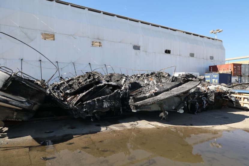 Radnik na licu mjesta: "Zbog lebdećih čestica koje raznosi vjetar zabrinuti smo za naše zdravlje jer radimo u neposrednoj blizini odloženih izgorenih brodica. Čestice su od izolirajućeg materijala koji se koristi na brodicama, pretežno od kamene vune, uz neugodan miris izgorene plastike i kiselkasti miris, vjerojatno izgorjelih akumulatora" * Na pitanje zašto ostaci plovila nisu adekvatno pokriveni , Florijan Veneruzzo iz nadležne Lučke uprave Pula kaže: "Dali smo ponude, ali bilo je skupo. Pet tisuća eura samo cerada, plus radovi i špaga"