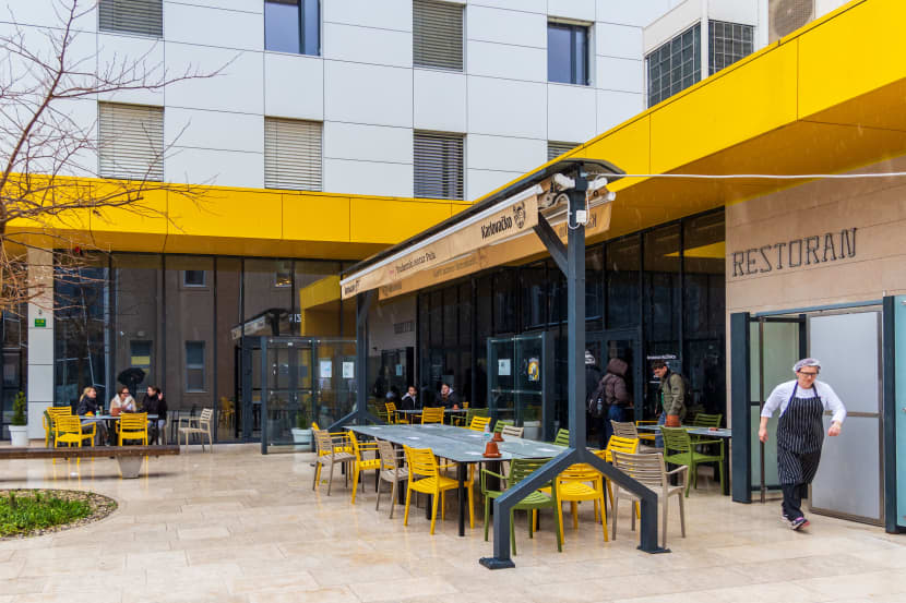 Bivša Mornarička bolnica u projektu vrijednom oko 7,8 milijuna eura prošla je nedavno kroz detaljnu transformaciju, koja je omogućila useljavanje četiriju fakulteta i najavu dolaska dodatna dva. Sasvim razumljivo, studenti su ovom novom kompaktnom zdanju, svojevrsnom studentskom gradu u kome se nerijetko provodi čitav dan, očekivali i mogućnost konzumacije toplog obroka.