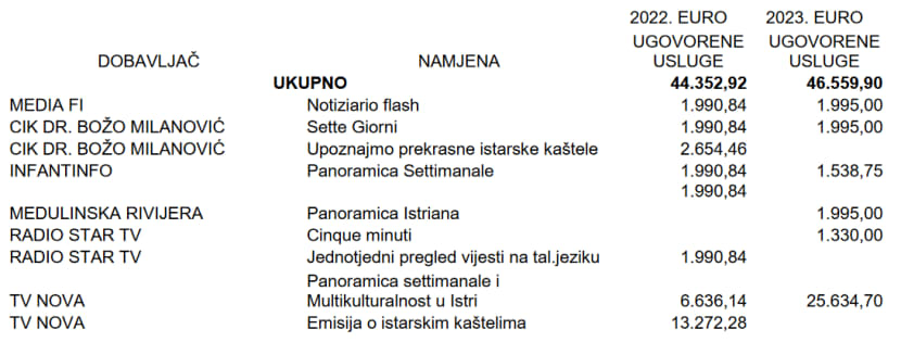 Vratimo se na najnovije podatke koje smo nakon mjesec i pol dana čekanja dobili iz Istarske županije, a odnose se na ukupno utrošena sredstva namijenjena medijima tijekom 2022. i 2023 godine.