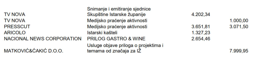 Od tog je iznosa najveći dio kolača, ukupno 239.313 tisuća eura otišlo za objavu raznih priloga o radu Istarske županije u dnevnim novinama.