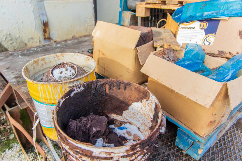 Ekipa Istre24 je minulog tjedna ušla i u to šporko skladište. Industrijski kotao u kojem se u tom trenutku topila čokolada bio je gotovo neprepoznatljiv od prljavštine. Pod hale bio je zmazan toliko da mu je prava boja ostala nepoznanica, uokolo su bili odloženi razni strojevi, poluotvorene vreće sa zrnima kakaovca i kutije s, pretpostavka je, čokoladom ili kakvim čokoladnim proizvodima. Smeća je bilo svukuda. Ispred skladišta su pak bile odložene kartonske kutije iznutra obložene plavim plastičnim vrećama u koje su bili pobacani prljavi, suhi komadi čokolade.