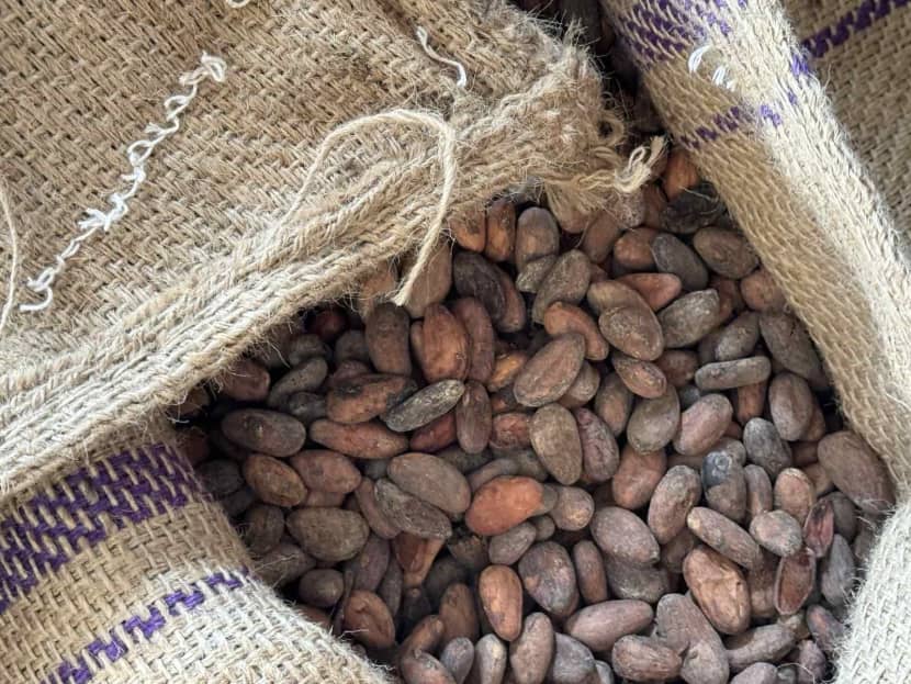 Zrna kakaovca u poluotvorenim vrećama