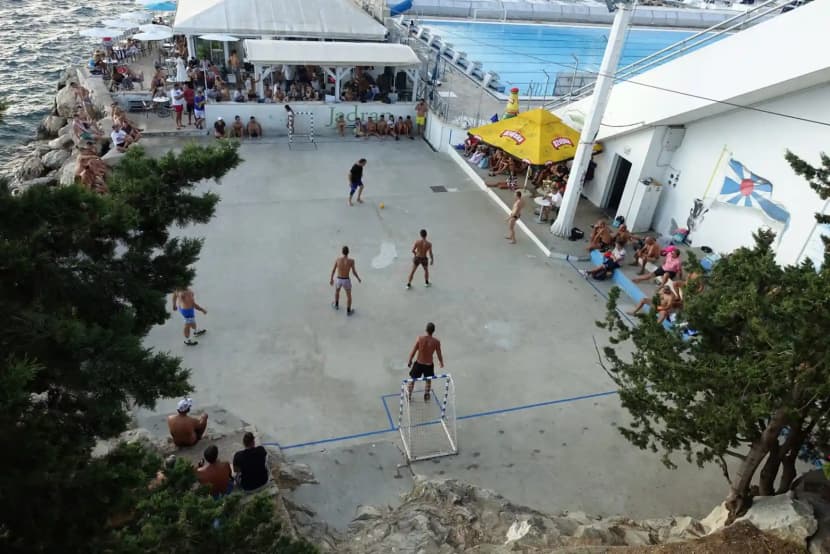 Po ljetnim vrućinama 'trojke' trče, driblaju, dodaju i šutiraju, a bodri ih mnoštvo gledatelja uglavnom u kupaćoj opremi, a pritom se mora paziti na korak. “Ovo je naš teren, naša pravila”, smije se jedan sudionik, tvrdeći da je “svjetska” titula opravdana. "Neka bilo tko dođe ovdje i igra ako misli da nas može izazvati."