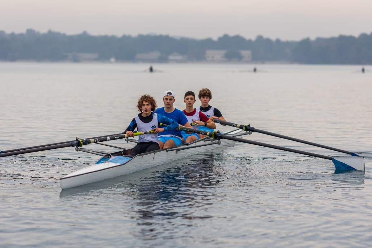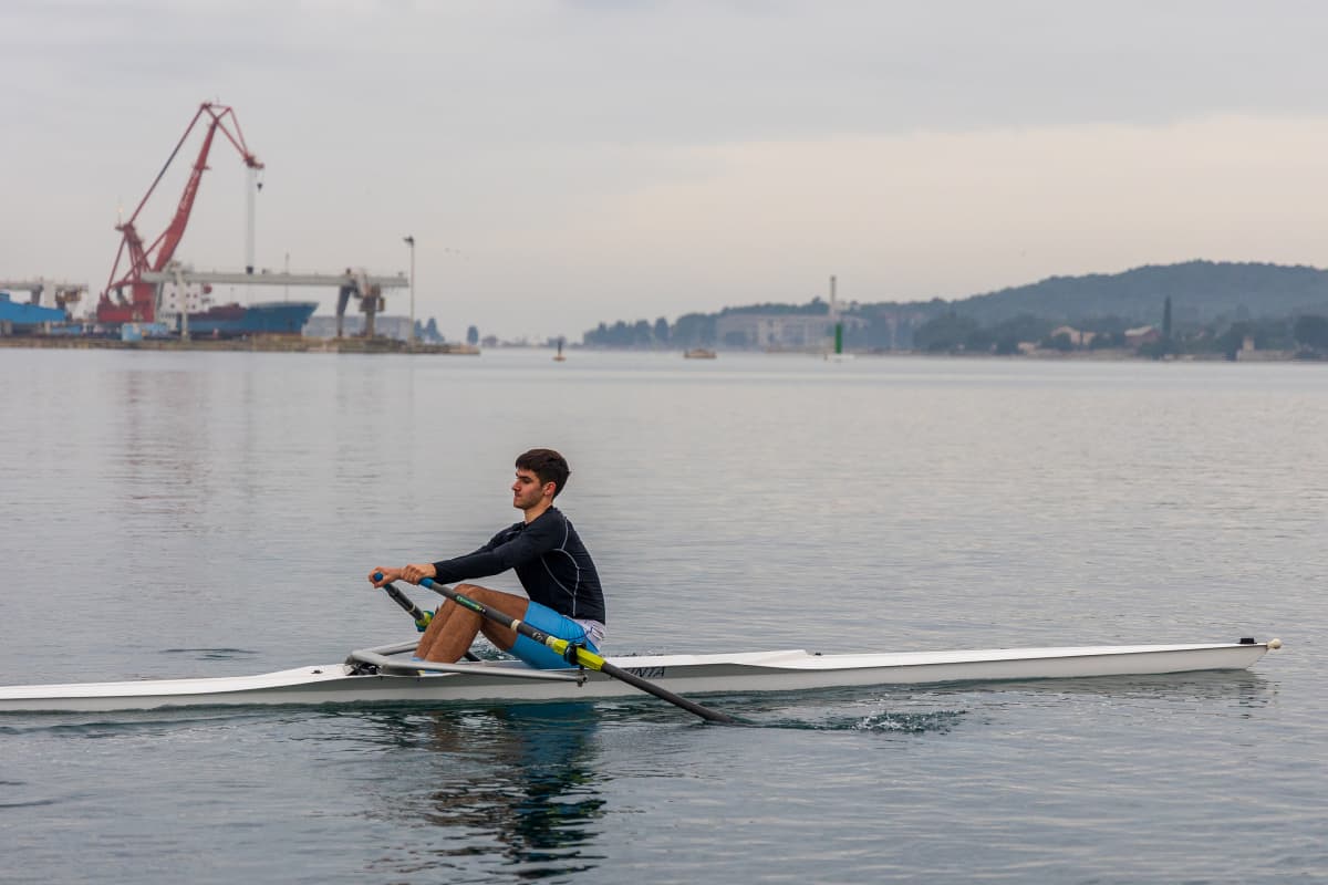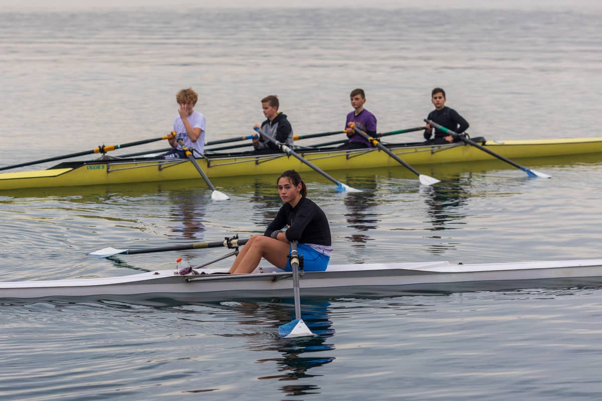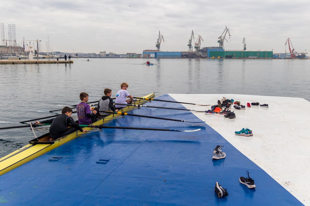 Ovdje fotografirani jutarnji treninzi veslača svih dobnih skupina sada su češći zbog aktualnih školskih praznika, koji završavaju ovog vikenda. Veslači su imali idealne uvjete, od mirnog mora do gotovo zamrlog plovnog prometa u zaljevu.