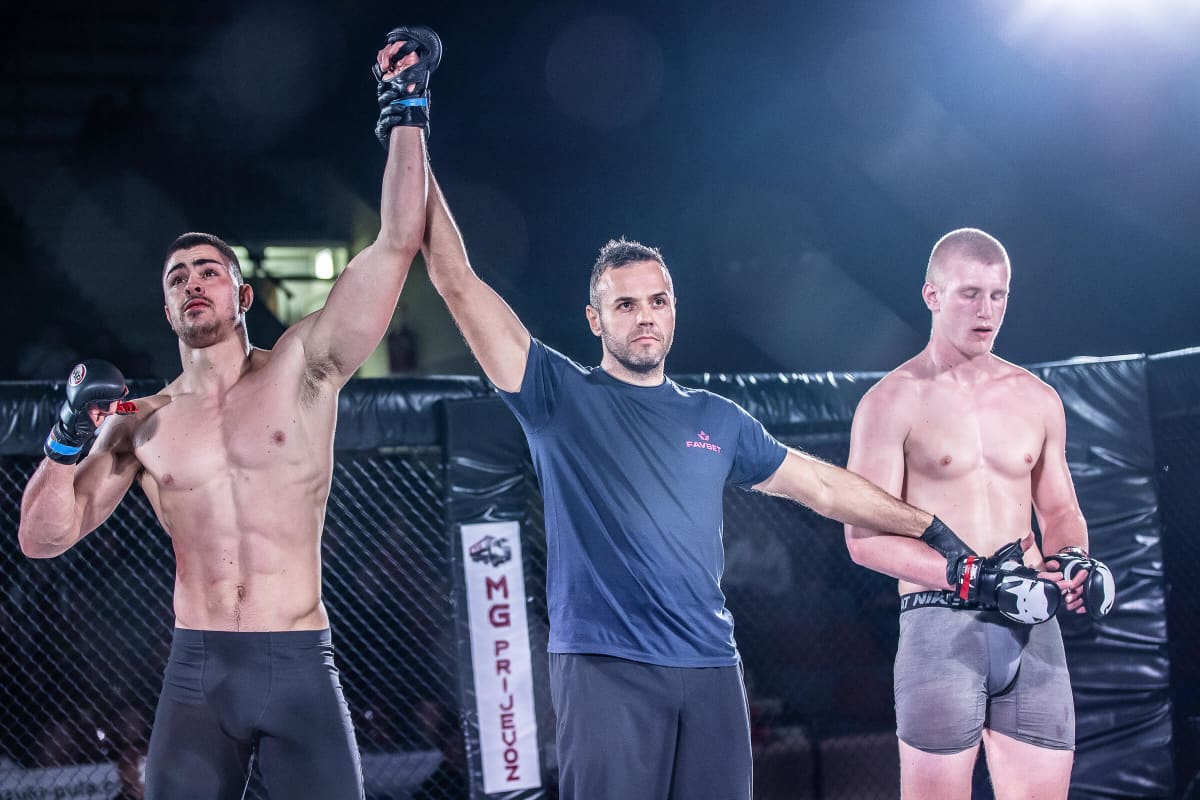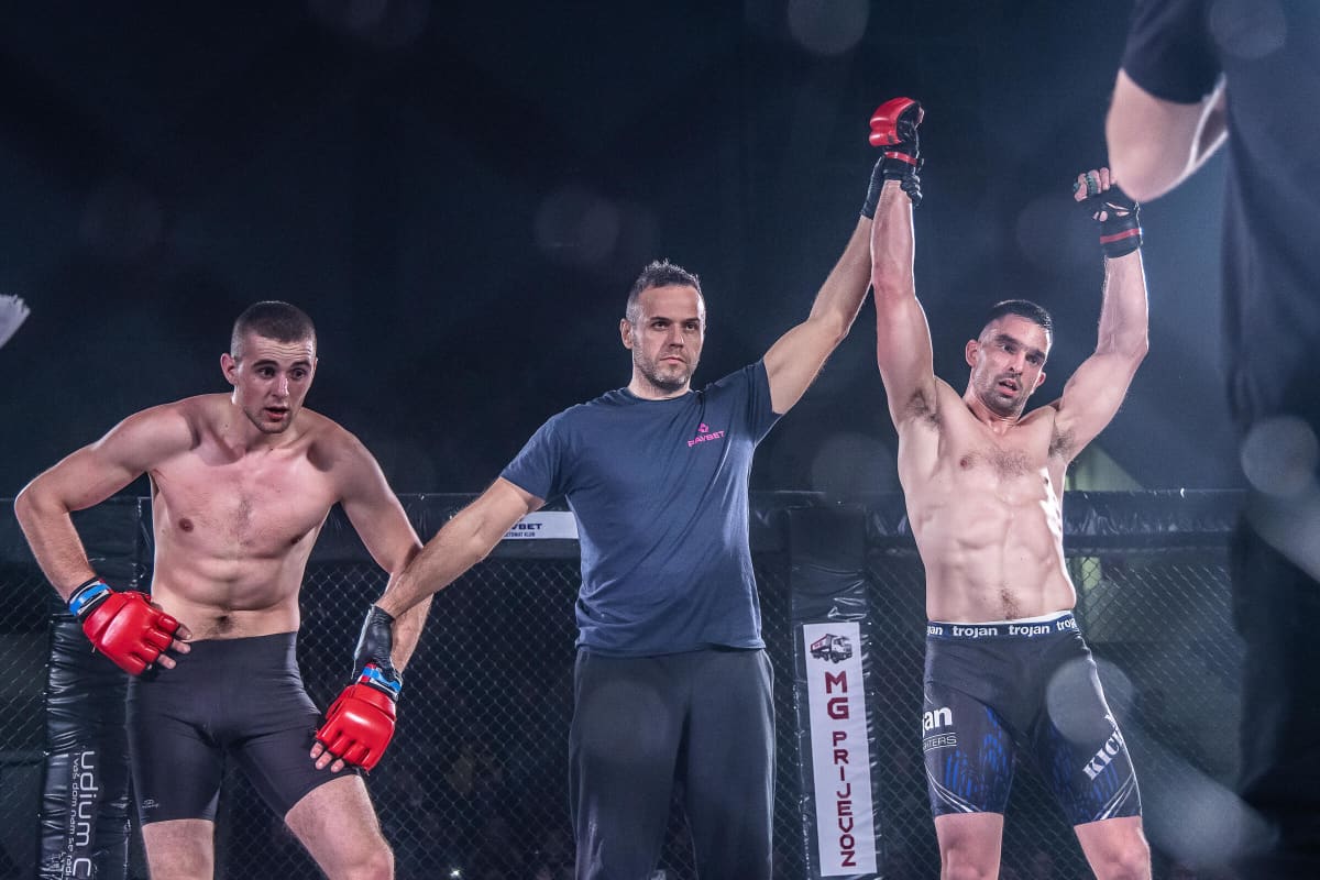 Meč večeri, u rasprodanoj dvorani, svakako je bio onaj između riječke regionalne borilačke zvijezde Mladena Kujundžića, koji je u 51-oj sekundi meča tehničkom nakautom svladao srpskog borca Ivana Vičića.
